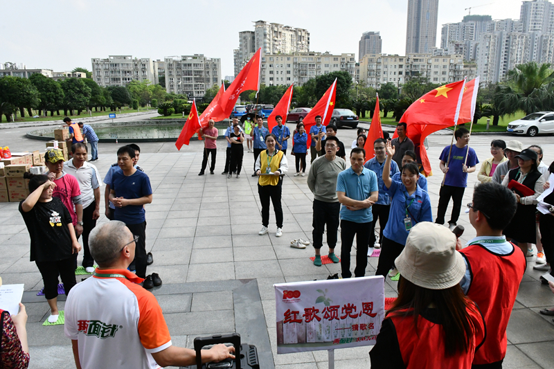 活動在激昂的大合唱《沒有共產(chǎn)黨就沒有新中國》中拉開帷幕,兩面針全體干部職工手舉五星紅旗和黨旗,激情高亢,唱出了對黨對祖國的熱愛,整齊嘹亮的歌聲響徹在公司上空。