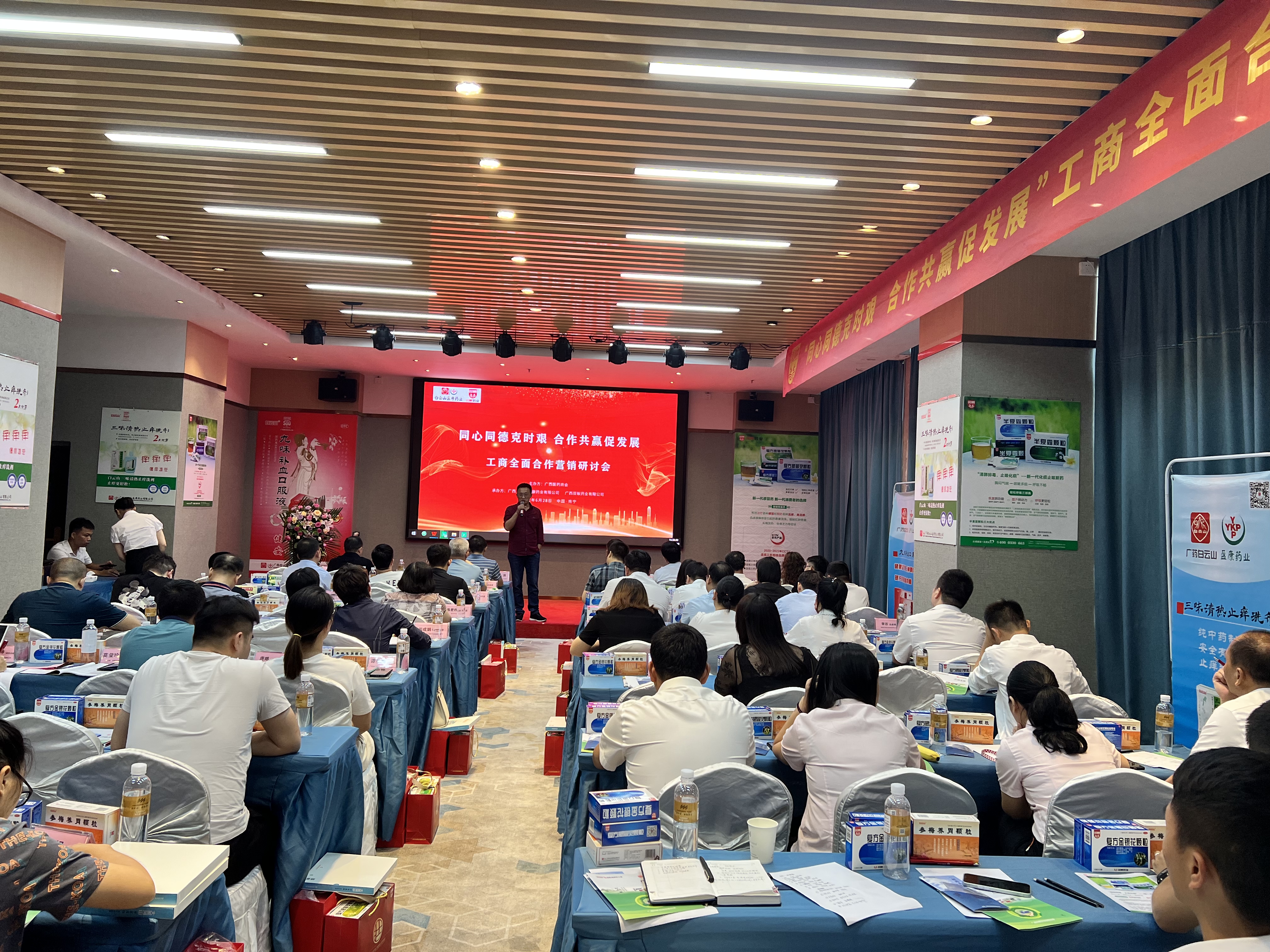 6月28日,由廣西醫(yī)藥商會(huì)主辦的“工商全面合作營(yíng)銷研討會(huì)”在南寧召開(kāi)。廣西兩面針億康藥業(yè)股份有限公司(以下簡(jiǎn)稱億康公司)受邀觀摩和交流,億康公司總經(jīng)理何政劍、高級(jí)銷售經(jīng)理孫玲代表出席此次會(huì)議。研討會(huì)組織廣西、貴州數(shù)家藥品生產(chǎn)企業(yè)和三十多家中小連鎖藥店到會(huì),圍繞“同心同德克時(shí)艱 合作共贏促發(fā)展”的會(huì)議主題,展開(kāi)交流探討。會(huì)議分析了目前國(guó)內(nèi)外醫(yī)藥零售行業(yè)發(fā)展形勢(shì),互通分享業(yè)內(nèi)最新訊息,研討如何突破當(dāng)下藥品終端零售面臨的困境與挑戰(zhàn)。