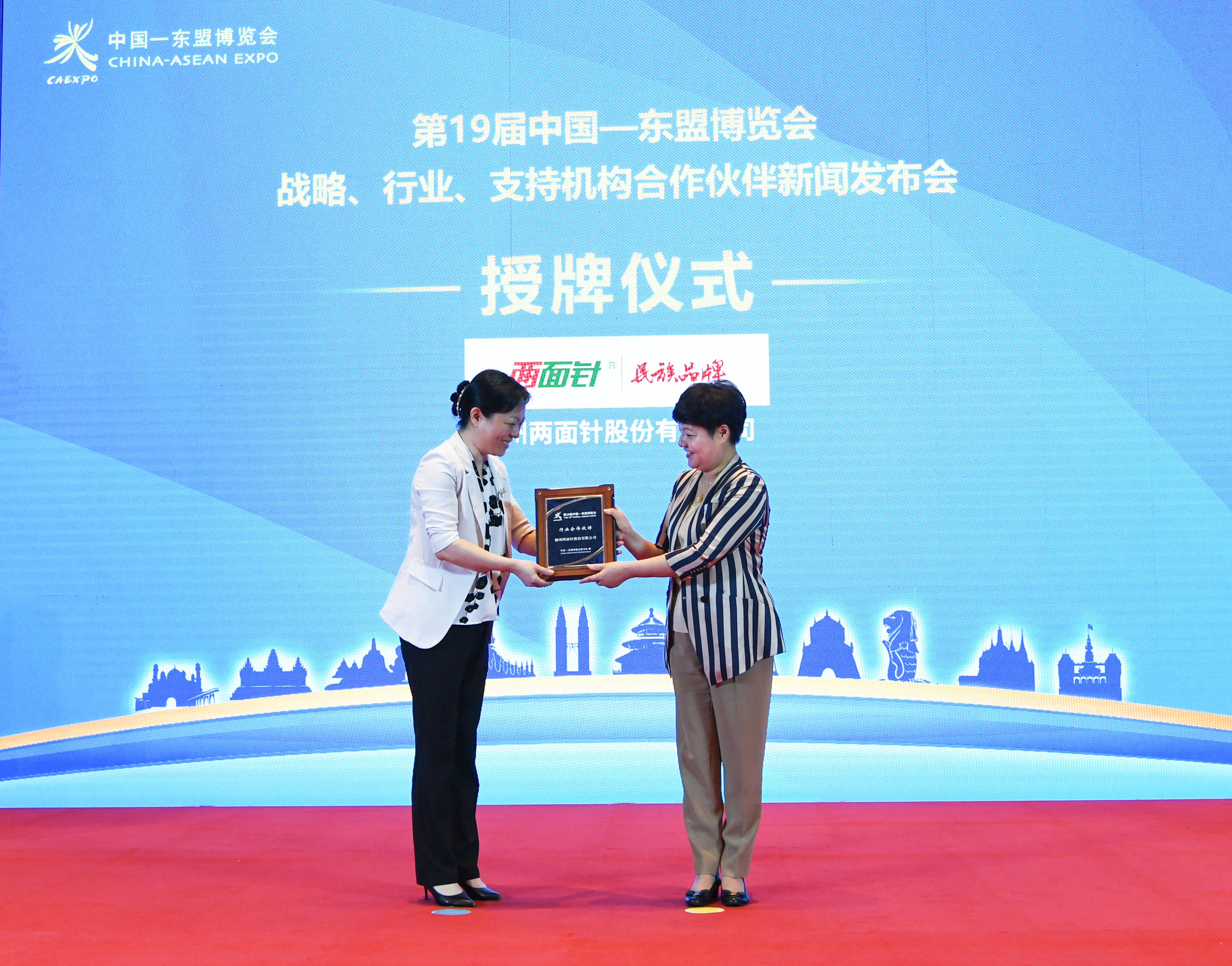 會(huì)上,兩面針被授予第19屆中國—東盟博覽會(huì)行業(yè)合作伙伴榮譽(yù)稱號(hào),“兩面針”牌系列產(chǎn)品被授予第19屆中國—東盟博覽會(huì)指定日用品。公司副總裁楊玲出席會(huì)議,并接回牌匾。