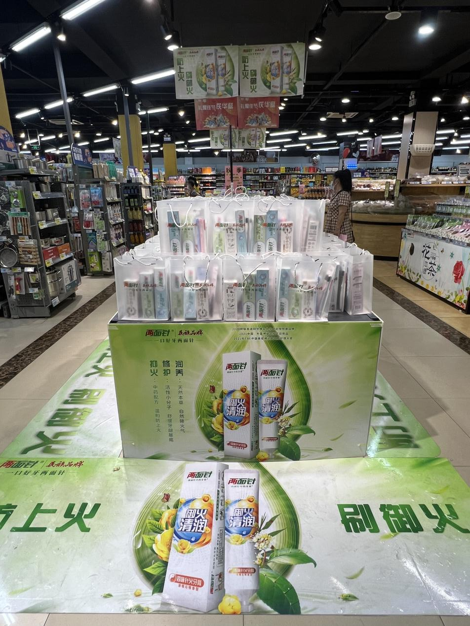 9月13日至23日,柳州市內(nèi)廣西聯(lián)華直營門店開展了由兩面針品牌冠名的920“愛牙日”檔期活動。活動前期,廣西聯(lián)華通過官方微信公眾號推送兩面針活動內(nèi)容和活動海報,并在全市108家直營門店的人工收銀臺前展示兩面針套包產(chǎn)品、在自助收銀機(jī)展示兩面針活動海報,同時在重點(diǎn)門店內(nèi)設(shè)置兩面針品牌特陳堆頭、端架陳列,實(shí)現(xiàn)線上線下全方位展示和推廣兩面針品牌和產(chǎn)品。