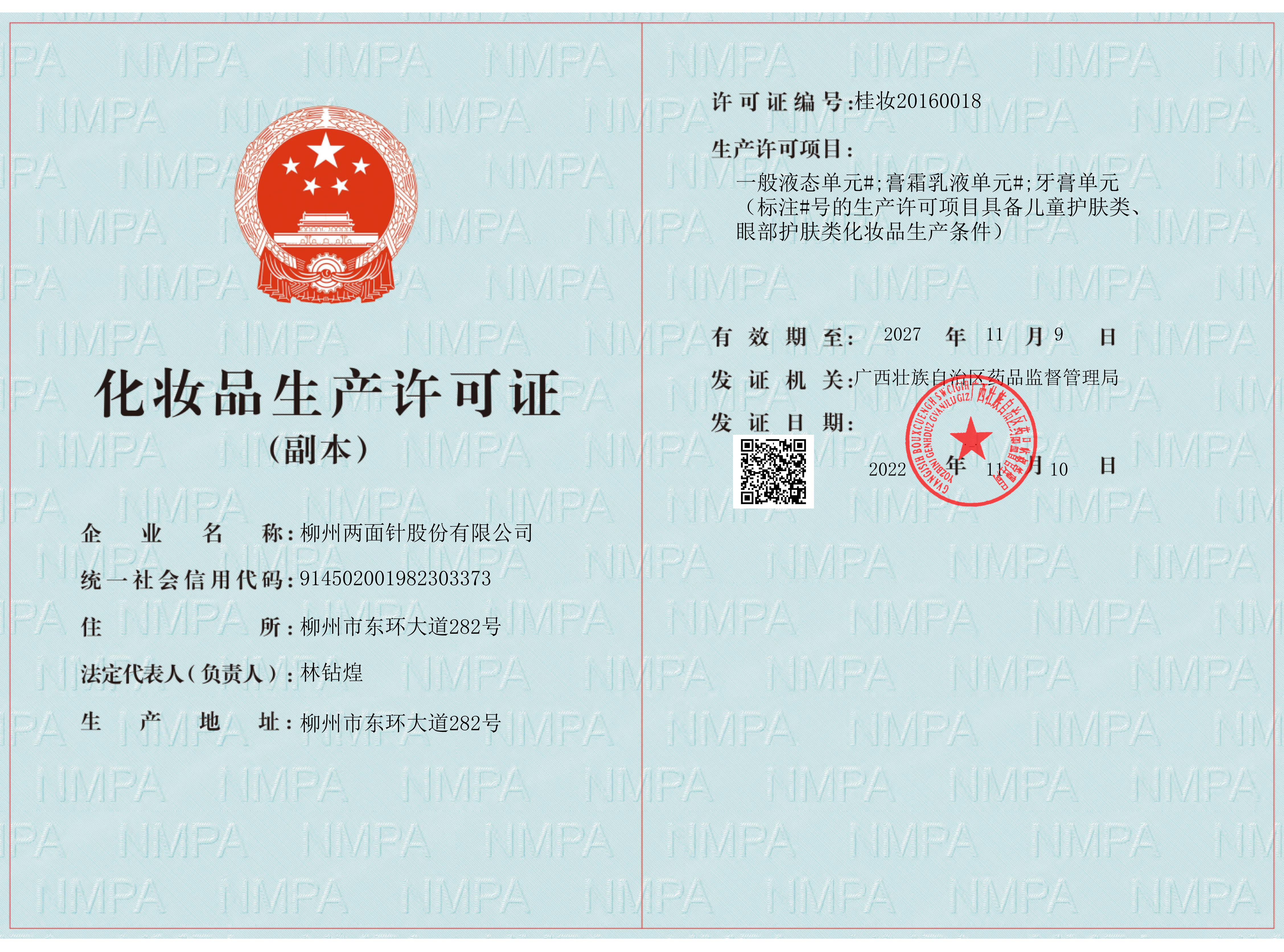 近日,公司順利獲得廣西藥品監(jiān)督管理局頒發(fā)的化妝品生產(chǎn)許可新證,成功獲批新增膏霜乳液單元。