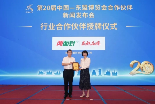 會上,14家企業(yè)成為東博會戰(zhàn)略、行業(yè)、支持機構(gòu)合作伙伴,15家企業(yè)產(chǎn)品成為東博會指定產(chǎn)品和特許商品,兩面針公司榮膺之一,被授予第20屆中國—東盟博覽會行業(yè)合作伙伴榮譽稱號,同時,“兩面針”牌系列產(chǎn)品也被授予第20屆中國—東盟博覽會指定日用品。兩面針市場部部長莫瑞珖出席會議,并接回牌匾。