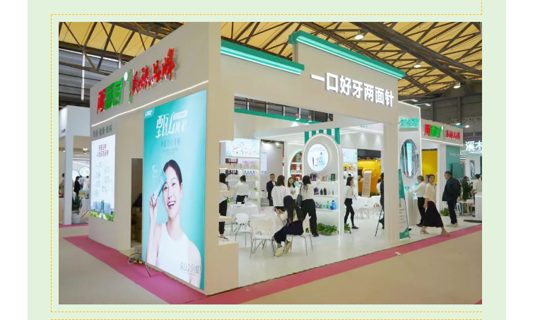 展會(huì)現(xiàn)場(chǎng),熱鬧非凡,兩面針展館內(nèi)綠意盎然,傳達(dá)品牌對(duì)自然與生態(tài)的崇敬,成為展會(huì)上一道亮麗的風(fēng)景線。公司年度新品甄LOVE·凈澈美白牙膏在展會(huì)上大放光彩,廣受青睞。其以“你自會(huì)閃耀”為理念,采用植物溫和美白配方,滿足年輕消費(fèi)群體對(duì)牙齒健康亮白的追求。同時(shí),清香系列、花清曉系列、炫光白系列等明星牙膏產(chǎn)品的集體亮相,也讓現(xiàn)場(chǎng)觀眾近距離感受到了兩面針民族日化產(chǎn)品的鮮明特色和口腔健康美學(xué)。