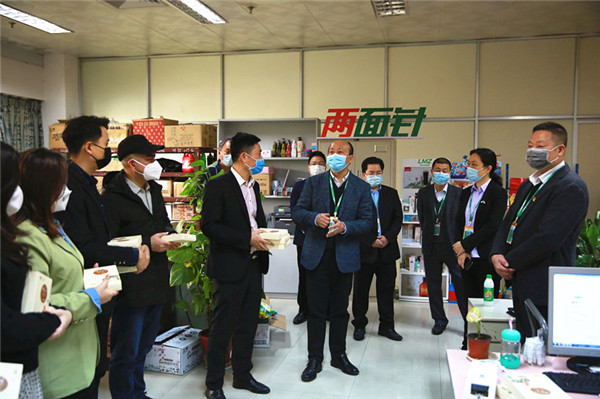上午9點,在公司黨委書記、董事長林鉆煌,黨委副書記、總裁吳堃的帶領(lǐng)下,公司領(lǐng)導(dǎo)班子成員一行6人分別來到各辦公室,將這份暖心的防疫包送到了每一位員工手上。
