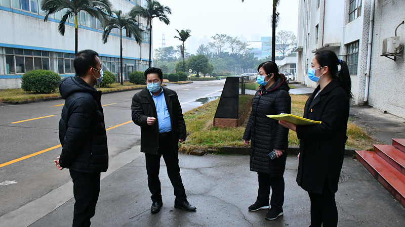 在億康公司生產(chǎn)車間外,覃永強副書記聽取了億康公司有關負責人關于復工復產(chǎn)的情況匯報。他提出要進一步加強員工的宣傳引導,提高思想認識,加大管控力度,每日對到崗員工增加一次體溫檢測,確保防控措施落實到位。