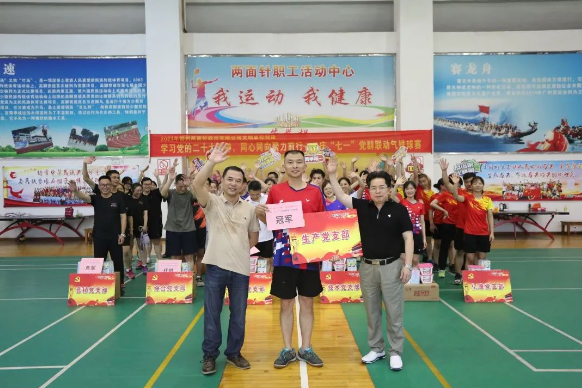 經(jīng)過五天的激烈角逐,生產(chǎn)黨支部勇奪冠軍,營銷黨支部、科室黨支部分別獲得亞軍、季軍。公司領導龔慧泉、覃永強到現(xiàn)場觀賽并為獲勝隊頒獎。