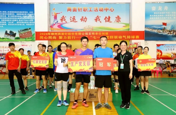 經(jīng)過七天的激烈角逐,由公司黨委、工會(huì)、團(tuán)委聯(lián)合舉辦的“同心同向 聚力前行——2024年兩面針公司慶‘七一’黨群聯(lián)動(dòng)氣排球賽”在公司職工之家室內(nèi)球館圓滿落下帷幕,生產(chǎn)黨支部勇奪冠軍,營(yíng)銷黨支部、科室黨支部分別獲得亞軍、季軍。公司副總裁楊玲到現(xiàn)場(chǎng)觀賽并為獲勝隊(duì)頒獎(jiǎng)。