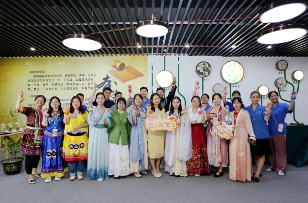 在兩面針牙膏博物館里,員工們還開展了中秋節(jié)民俗體驗(yàn)活動(dòng)——制作中藥香囊,這不僅是引導(dǎo)員工傳承非遺文化,還可以讓大家愉悅身心。一眼可見的古風(fēng)布材,填充材料雜糅了本草清香藥材以及桂花,讓大家真正體會(huì)到“中秋節(jié)也叫桂花節(jié)”的傳統(tǒng)文化。穿針、引線、縫制……不到半個(gè)小時(shí),一個(gè)個(gè)古風(fēng)古韻的香囊成品就提在手中了,大家三三兩兩比畫手執(zhí)香囊的動(dòng)作并合影留念。