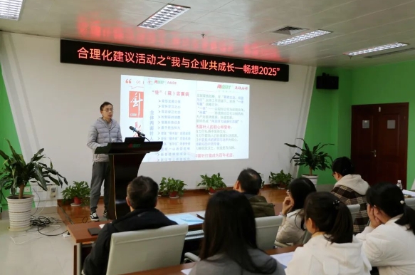 在“我與企業(yè)共成長——暢想2025”為公司高質(zhì)量發(fā)展建言獻(xiàn)策環(huán)節(jié),劉佳欣、江寧、劉彩云等由各分會(huì)指派的員工代表逐一上臺(tái)發(fā)言,分享個(gè)人2024年的收獲,以及對(duì)公司改進(jìn)生產(chǎn)經(jīng)營管理、加強(qiáng)人才隊(duì)伍建設(shè)、推進(jìn)黨建帶群團(tuán)建設(shè)等各方面的合理化建議。在場員工聚精會(huì)神,對(duì)建言獻(xiàn)策的精彩部分頻頻點(diǎn)頭贊同。