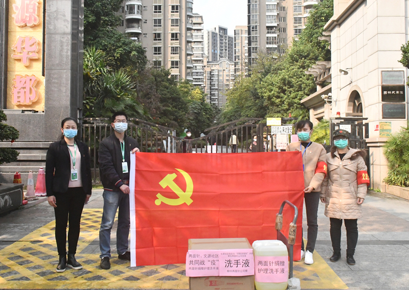 2020年2月,公司黨委向文源社區(qū)捐贈兩面針洗手液