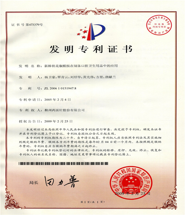 新棒狀花椒酰胺在制備口腔衛(wèi)生用品中的應(yīng)用