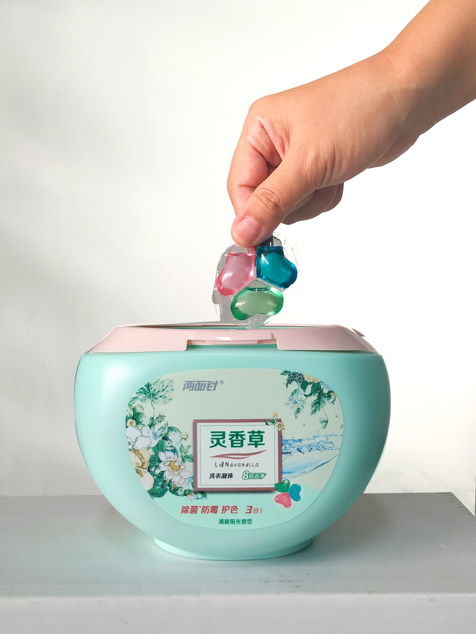 2020年10月推出的兩面針靈香草洗衣凝珠同樣引起了大眾的關(guān)注。產(chǎn)品運(yùn)用濃縮配方,具備8倍清潔力,超越了傳統(tǒng)洗衣粉、洗衣液的使用感受。一顆12g的三色花瓣式凝珠,粉色護(hù)色,藍(lán)色去污,綠色防霉,可解決洗衣的多個(gè)痛點(diǎn),輕松搞定日常洗衣問(wèn)題。